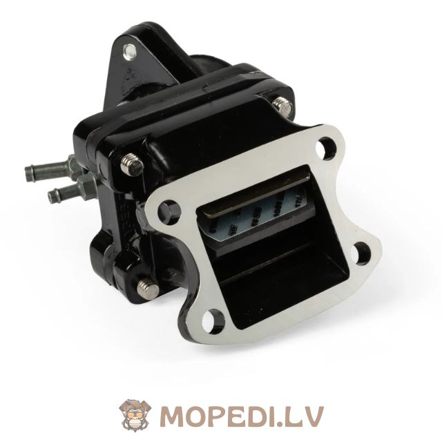 High-quality performance intake kit for tuned Peugeot engines, including reed valve, intake manifold and adapter.