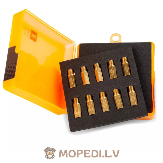 Achieve precise carburetor tuning with this Stage6 main jet kit, designed for PWK carburetors from 21 to 28mm. The set includes 10 high-precision jets in different sizes, allowing you to fine-tune your setup for optimal performance, acceleration, and top speed.